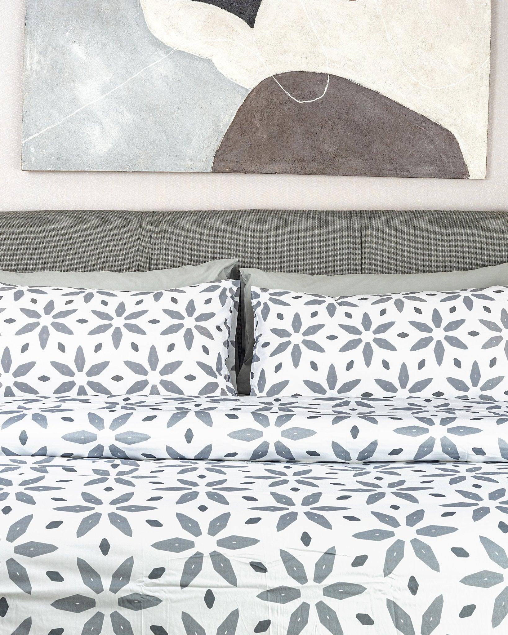 Made with 100% cotton and breathable material, the intricately woven pattern on the Crystal duvet cover set mirrors the multifaceted beauty of crystals, casting a delicate play of light and shadow across your bed.
