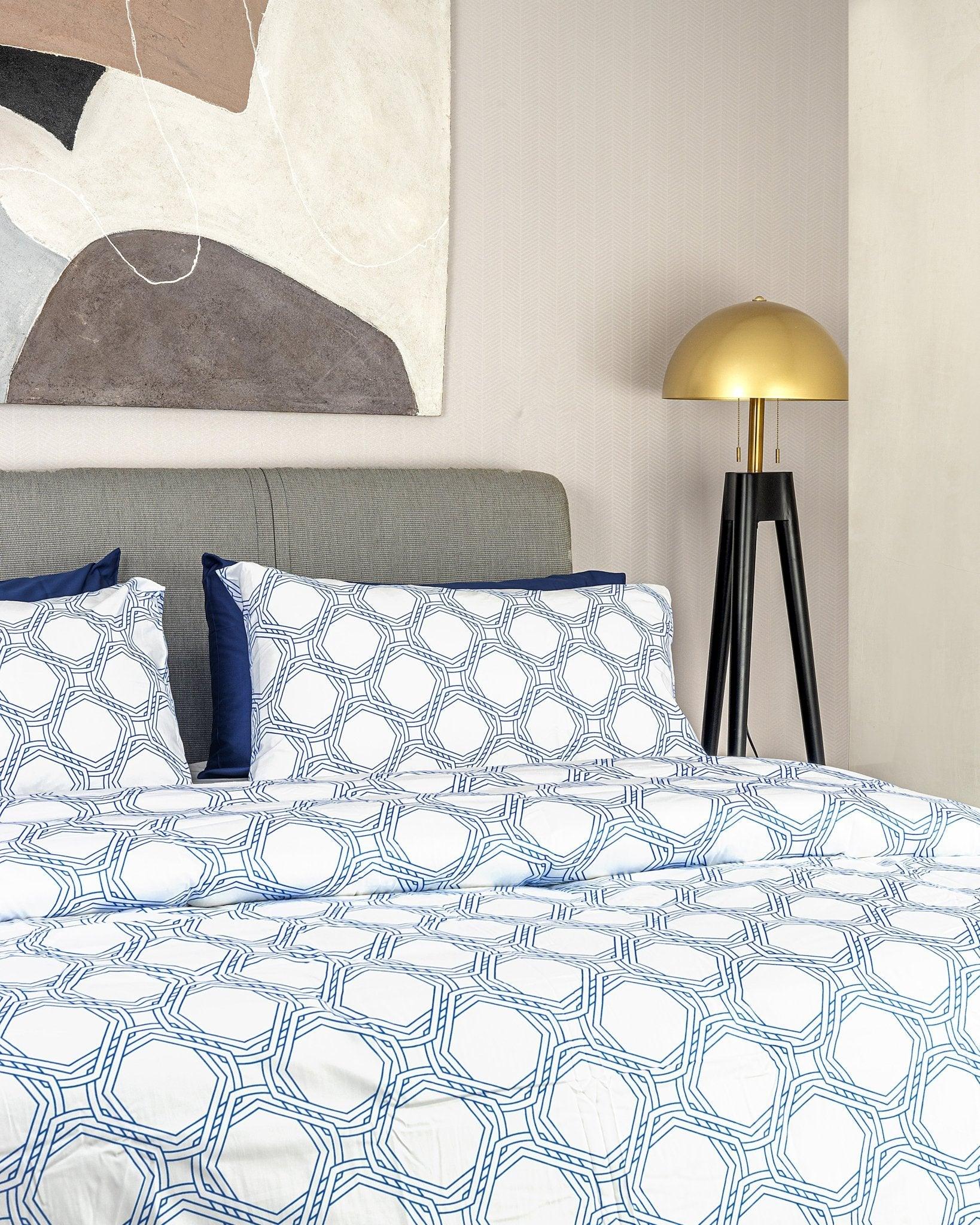 You can never go wrong with our Octo duvet cover set, it comes in two colors: Blue and Rust. For a more elegant and complete look pair with our Luxe sheet set and watch the transformation.
